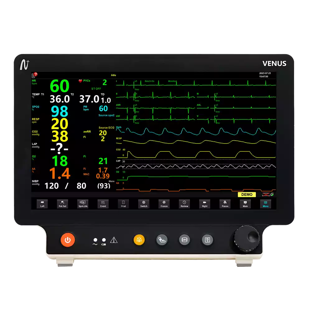 El monitor Venus de Northern Meditec es una solución multiparamétrica sofisticada diseñada para ofrecer monitoreo clínico completo y continuo en entornos como Unidades de Cuidados Intensivos (UCI), Unidades Coronarias (CCU) y Unidades de Cuidados Intensivos Neonatales (NICU).