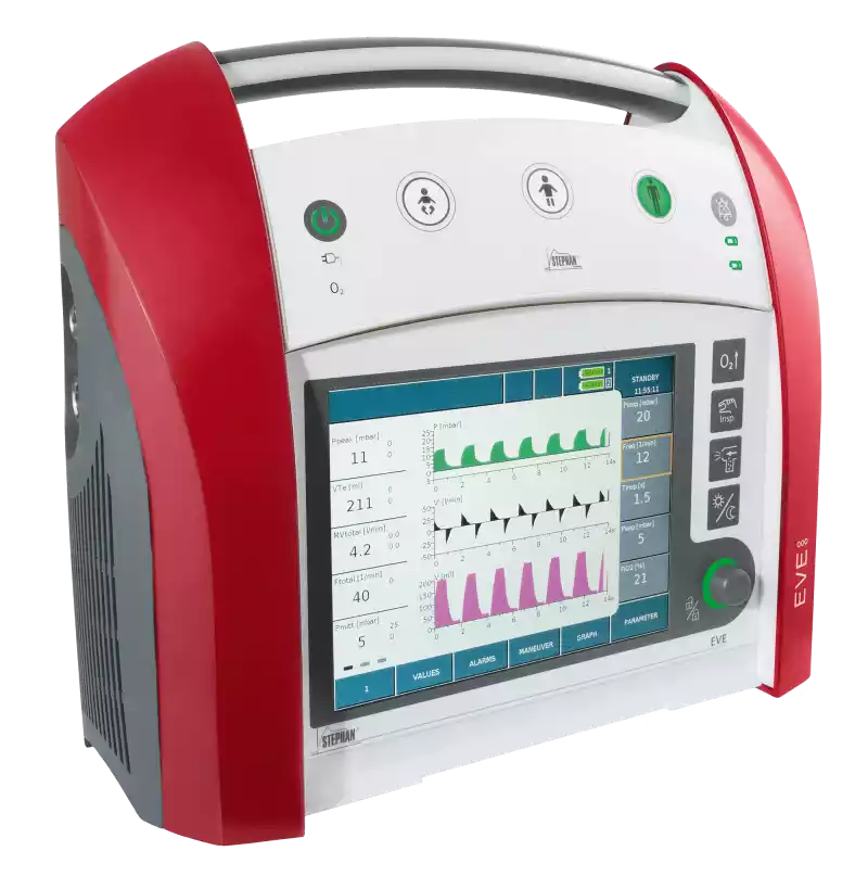 El Ventilador de Transporte STEPHAN EVE TR es una solución de alto rendimiento diseñada para proporcionar ventilación mecánica segura y precisa en situaciones de emergencia, traslado y cuidados críticos, especialmente en pacientes neonatales y pediátricos.